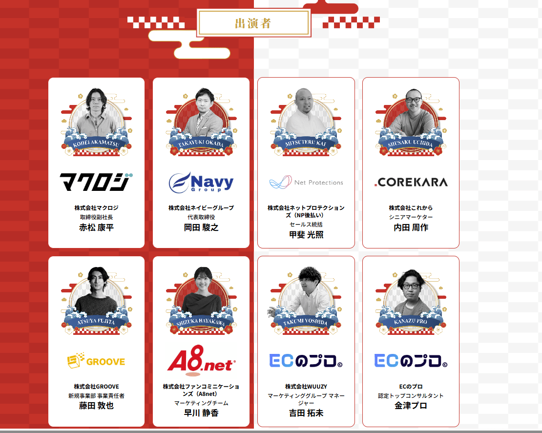 2025年主要EC支援会社が集う最後のECセミナー開催のお知らせ / プレスリリース / 2025年12月7日 日本国内トップの主要EC支援会社が大集結!紅白ECカンファ2025 12/9 アマゾン&楽天&自社EC来年に向けた売上爆増計画 12/11 楽天売上の壁突破 12/9 ※申込みのきっかけは「ネイビーグループ」を選択 国内主要Amazon支援会社が集結!Amazonカンファレンス2025 12/12